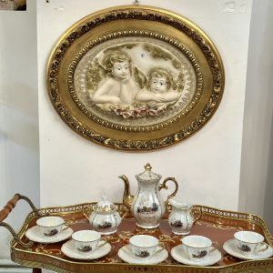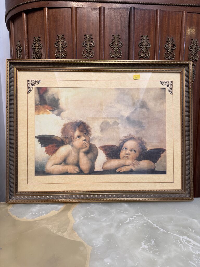 Tablou litografie ,scenă cu amorasi protejat cu sticlă Rama din lemn Dimensiuni 67/51 cm