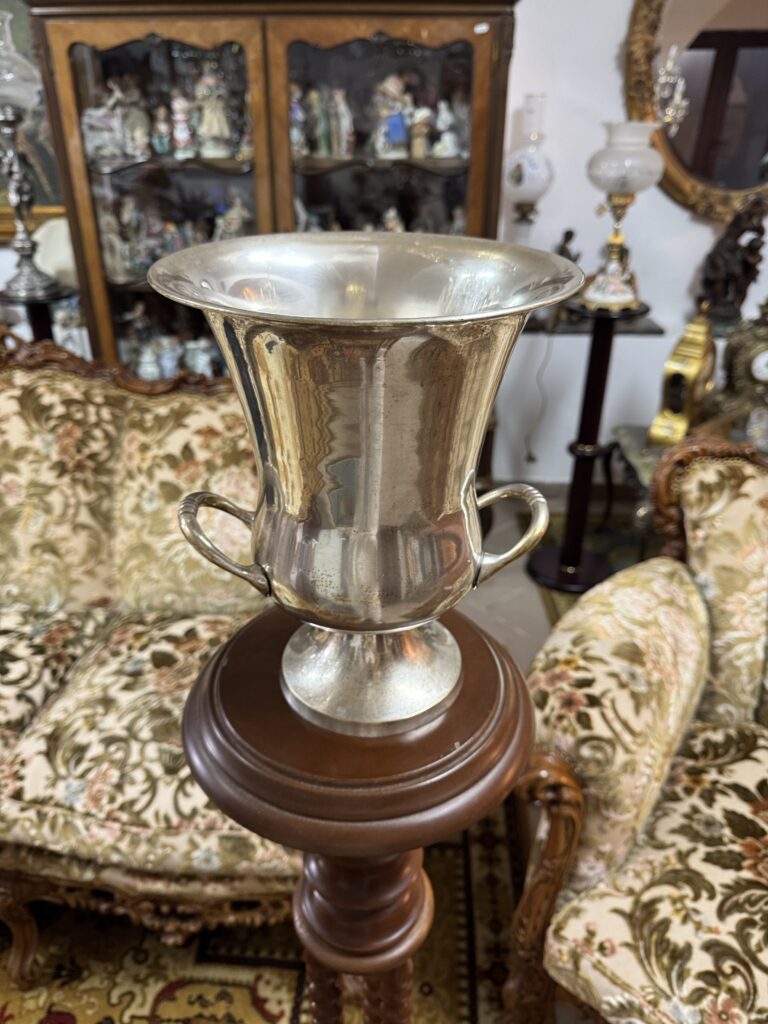 Elegantă și rafinată frapiera ,piesă decorativă din alama argintata impresionează prin forma sa clasică și…