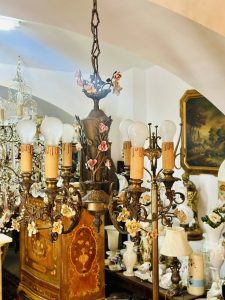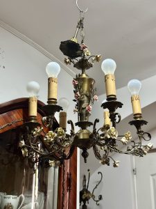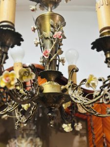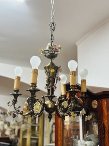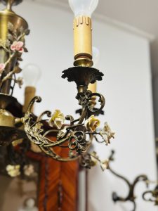 Candelabru deosebit din bronz cu porțelan –