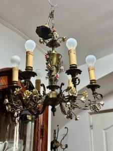 Candelabru deosebit din bronz cu porțelan