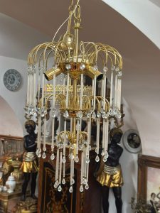 Candelabru stil Hollywood Regency – sticlă Murano & ramă italiană, 4 lumini