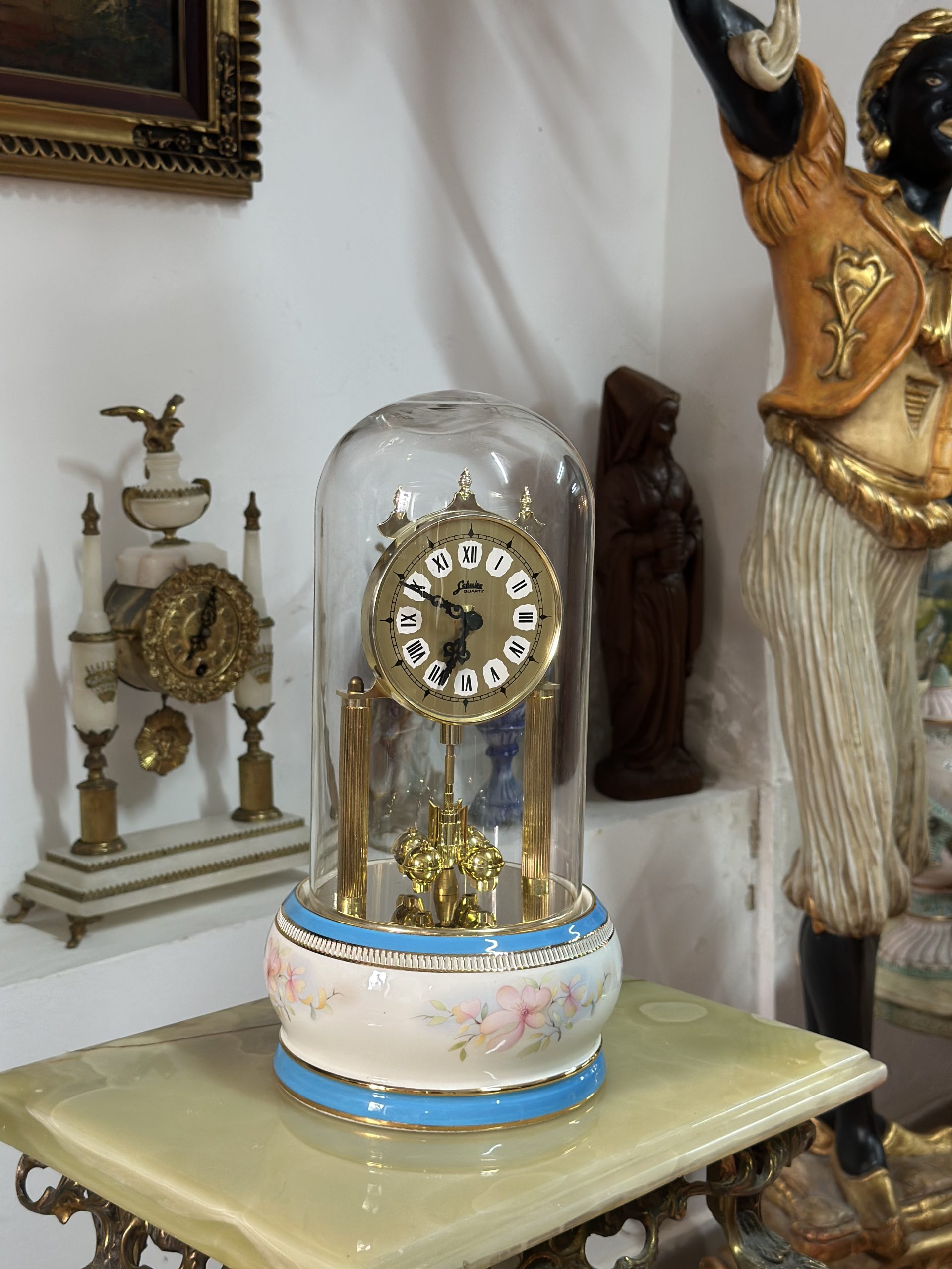 🩵Ceas sub cupolă din sticlă, pe suport din porțelan fin – model de colecție
