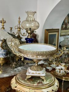 Centru de masă /bombonieră din porțelan Italia cu bronz aurit