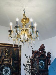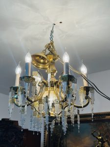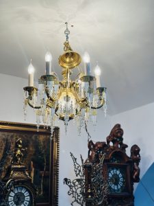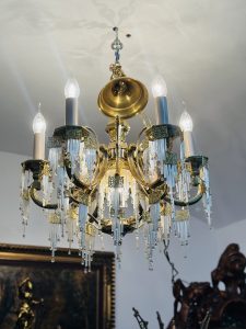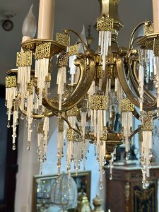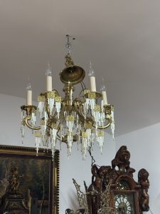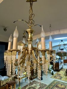 Deosebit candelabru din bronz aurit Dore-cristale tip baghetă