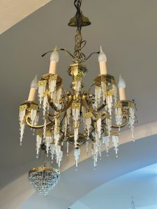 Are șapte lumini – șase brațe exterioare și o lumină centrală interioară, oferind o iluminare caldă și spectaculoasă.