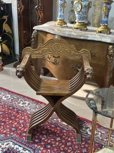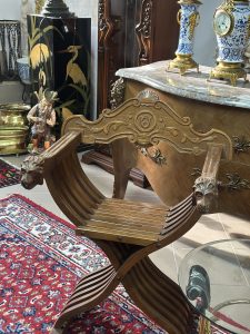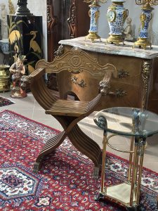 Elegant scaun savonarola pliabil din lemn stil renaștere