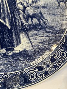 Farfuria prezintă o scenă pastorală inspirată din opera celebrului pictor francez Jean-François Millet, cunoscut pentru reprezentările vieții rurale.