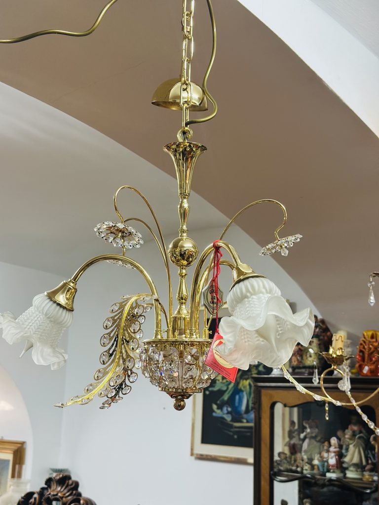 Candelabru deosebit din bronz cu porțelan – 💎 Un candelabru elegant realizat din bronz masiv,…