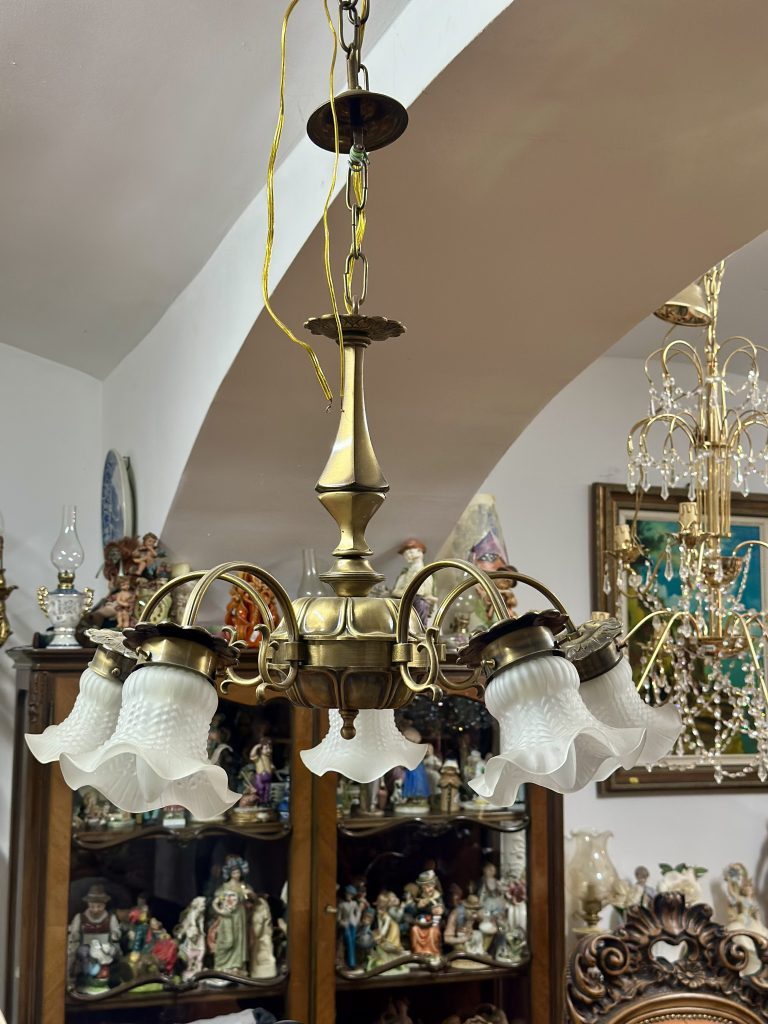 -22%Candelabru din bronz vopsit antichizat cu cinci abajururi din sticlă
