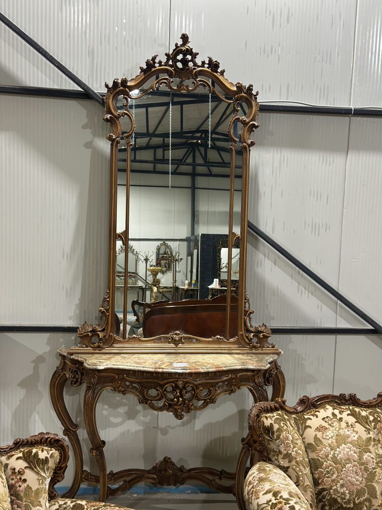 ✨ Consolă cu oglindă – piesă deosebită în stil clasic Consolă elegantă cu oglindă, realizată…