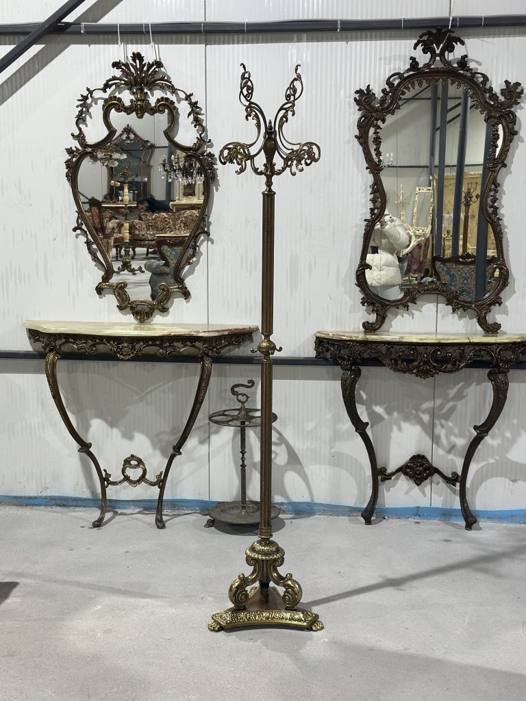 ✨ Cuier de podea din bronz și onix Cuier vintage de lux, realizat din bronz…