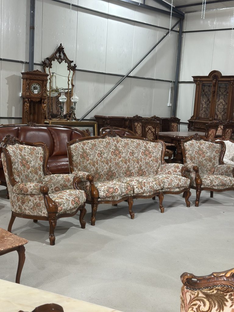🌸 Set canapea + 2 fotolii din lemn masiv – stil clasic elegant 🌸 🌺Piesele…