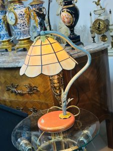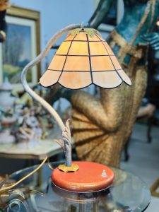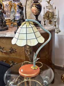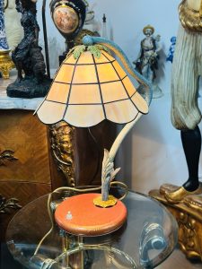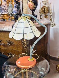 🔸 Abajur stil Tiffany, realizat din segmente de sticlă, care creează o lumină caldă și plăcută